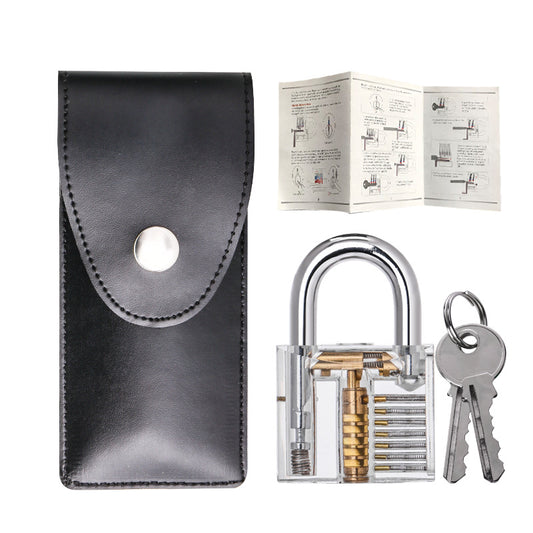 Locksmith Hand Tools Lock Pick Set Transparent Visible Cutaway Practice Padlock With Broken Key Removing Hooks 15pcs set