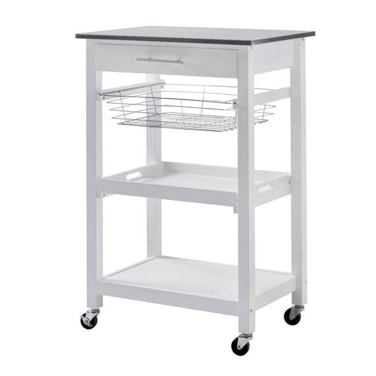 White Stainless Steel Top Kitchen Cart with Drawer and Storage Shelves
