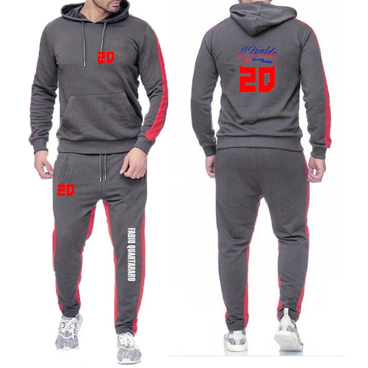 2025 Spring Autumn FABIO QUARTARARO WITH SIGNATURE Printed Sports High Quality Sets Men's Pocket Hooded Hoodies+Sweatpants Suits