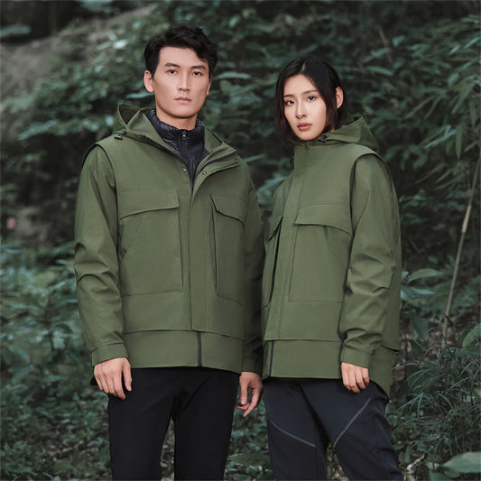 3-in-1 Waterproof Winter Jacket for Men & Women - Removable Down Liner Hooded Windbreaker (5000mm, 90 White Duck Down) - S-6XL