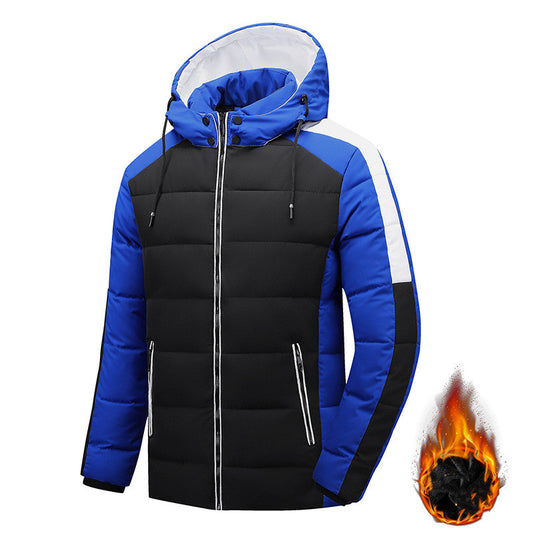 Men Plus Velvet Thick Color Matching Cotton Coat