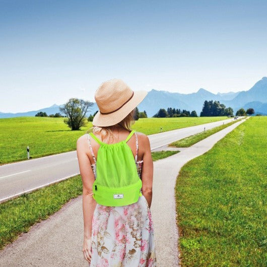 Drawstring Backpack String Bag Foldable Sports Sack with Zipper Pocket-Green - Color: Green