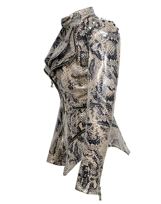 Women's Lapel Collar Vegan Biker Jacket