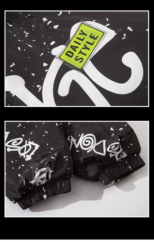 Winter Splash Ink Graffiti Padded Jacket Men Thicken