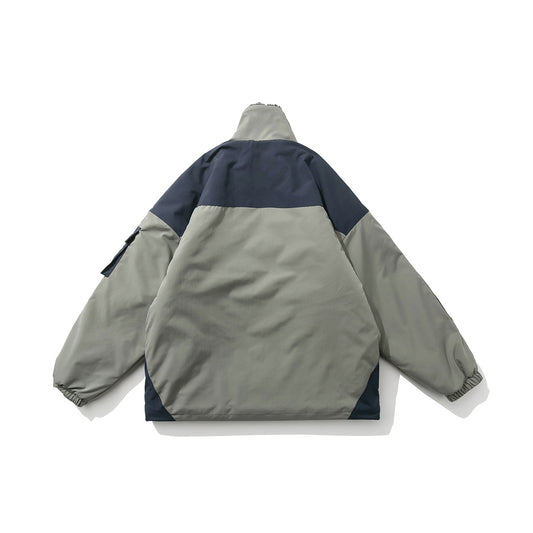 Color-blocking Pocket Pullover Cotton American Retro Men's Cotton Coat