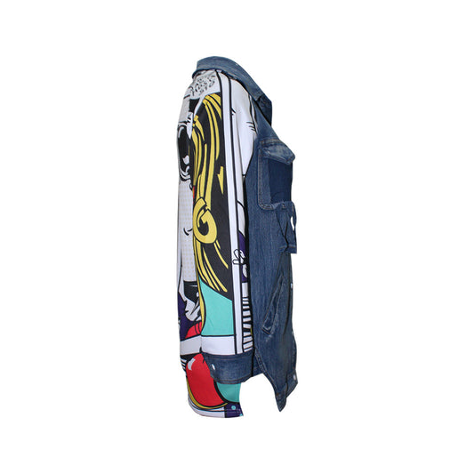 Skinny Jacket Graffiti Print Contrast Color Motorcycle Leather Jacket