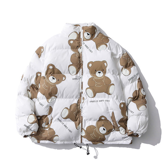 Cute Bear Print Winter Couple Cotton-padded Jacket Men's Thick Warm Cotton-padded Jacket Lazy Wind Jacket