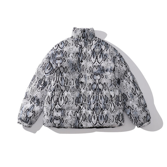 Snake Pattern Full Print Stand-up Collar Cotton Clothing Men's And Women's National Tide Brand Quilted Couple Jacket