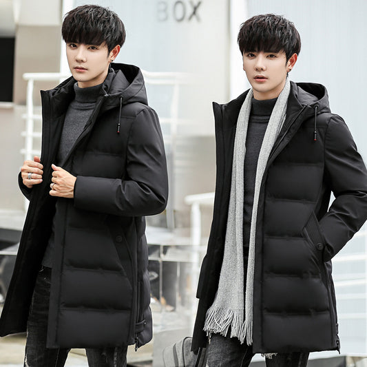 Korean Hooded White Duck Down Winter Long Warm Jacket Men's