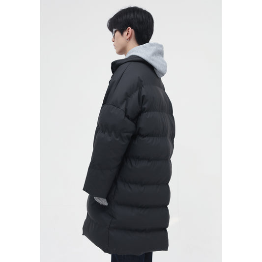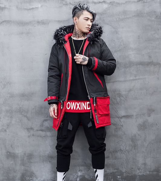 New Korean men's long section large cotton coat tide brand black red color matching down jacket lovers large size coat