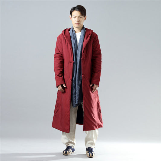 National Style Stand-Up Collar Single-Breasted Warm Long Cotton Coat