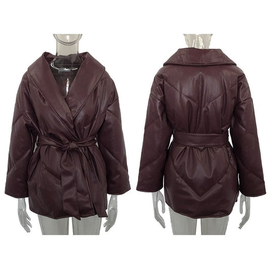 Winter Parkas For Women Loose Leather Coats Ladies Jackets