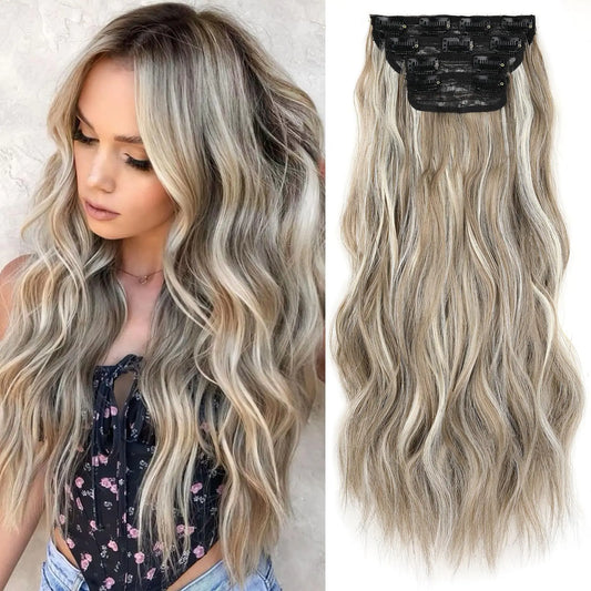 ZRQ Clip in Hair Extensions 20 In Long Wavy Ash Brown with BlondeHair Extensions Clip in 4Pcs Thick Soft Synthetic Clip in Hairpieces for Women Girls #12H613