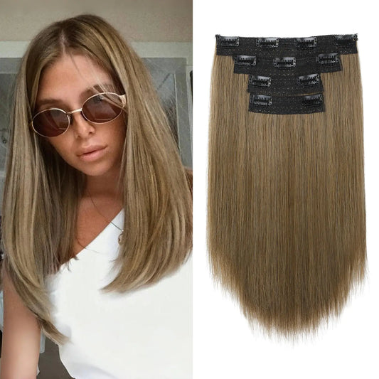 NTYNTY Hair Extensions 14" Short Clip in Hair Extensions 4PCS Straight Brown Hair Extensions Natural Soft Synthetic Hairpiece for Women - Ash Brown