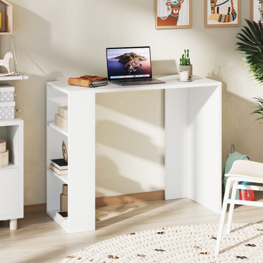 36 Inch White Computer Desk with 3 Open Shelves for Home Office Study-White