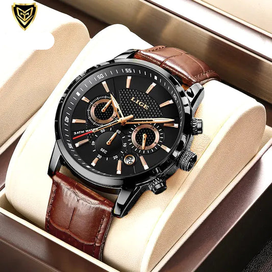 Mens Watches LIGE Top Brand Luxury Leather Casual Quartz