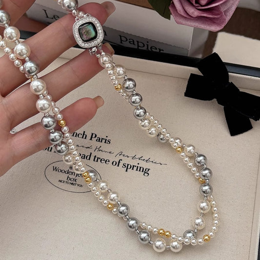 Special-interest Design Double Layer Twin Pearl Heart Necklace