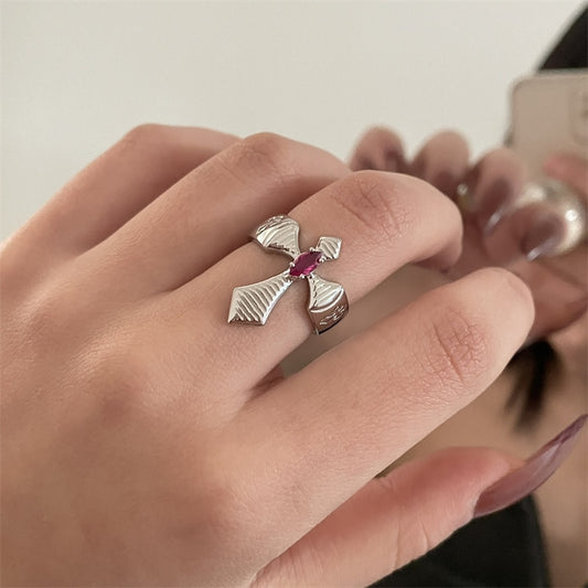 Red Zircon Cross Open Ring