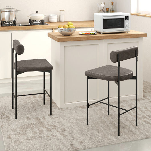 26 Inch Upholstered Bar Stools Set of 2 Counter Height Bar Chairs with Backrest-Gray - Color: Gray