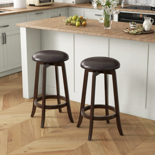 Set of 2 24/29 Inch Upholstered PU Leather Bar Stool with 360? Swivel Round Seat-29 inches - Color: Brown - Size: 29 inches