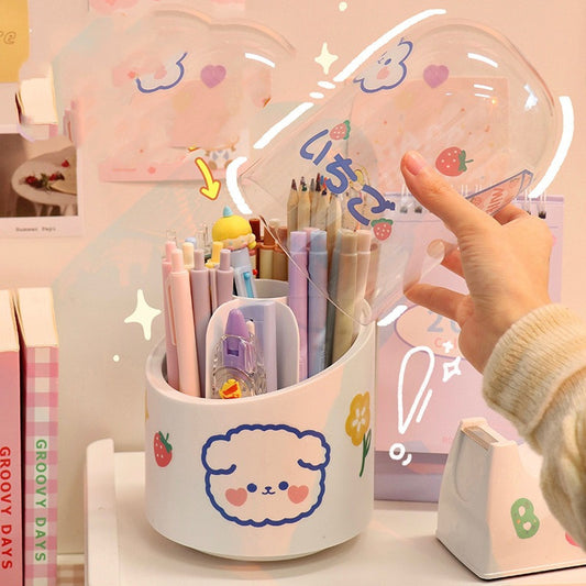 Large-capacity Cute Desktop Dust-proof Makeup Brush Storage Rotating Pen Holder