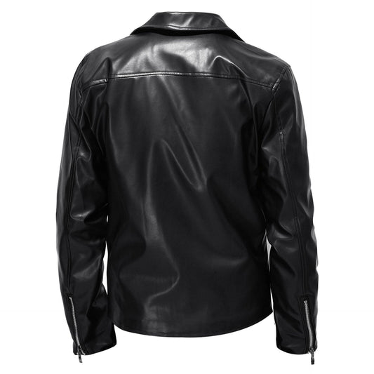 Men's Slim Fit Leather Jacket - Spring Autumn Round Neck Zip Front Casual Coat