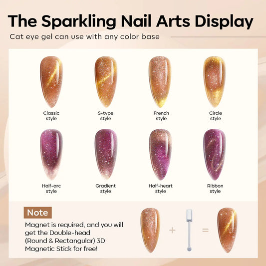 modelones Cat Eye Gel Nail Polish Set 6 Colors, Glitter Nude Shiny Champagne Burgundy Gold Magnetic Effect Sparkle Stunning Home Nail Art Gel Kit Gift A- Cosmo Party