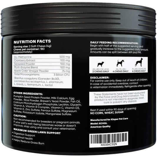 Green Lawn Chews for Dogs Cranberry ACV Digestive Enzymes Natural Dog Urine