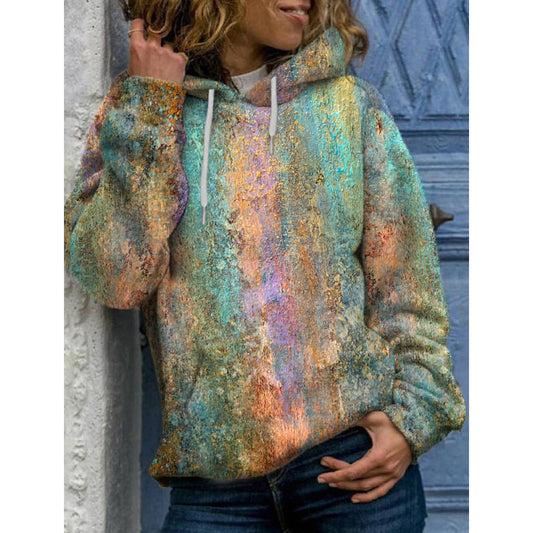 Ladies Sweatshirt Casual Hooded Large Pocket Print Letter Long Sleeve Top