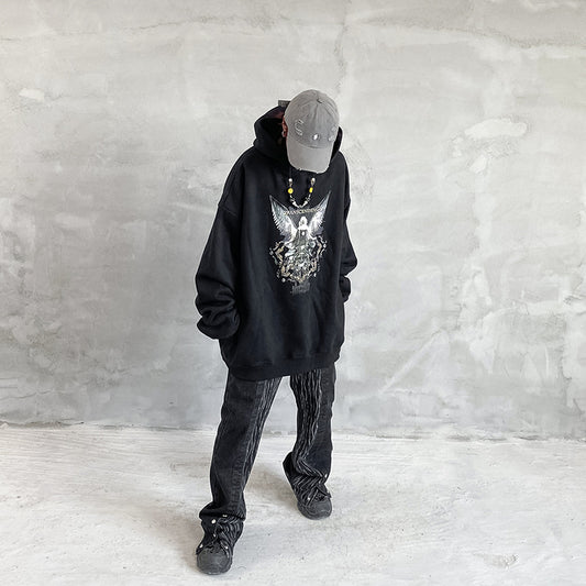 Hip Hop Angel Print Hooded Pullover Sweatshirt