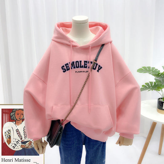Loose Lazy Style Hooded Sweatshirt With Plush Letter Print