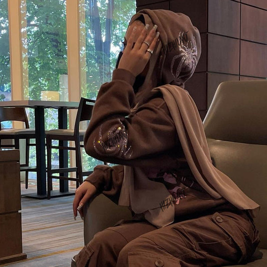 Brown Print Hooded Oversized Sweatshirt