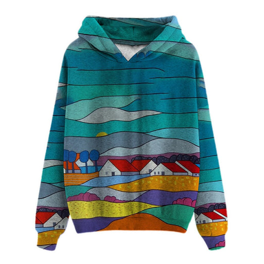 Loose Long Sleeve Pocket Print Hooded Sweatshirt
