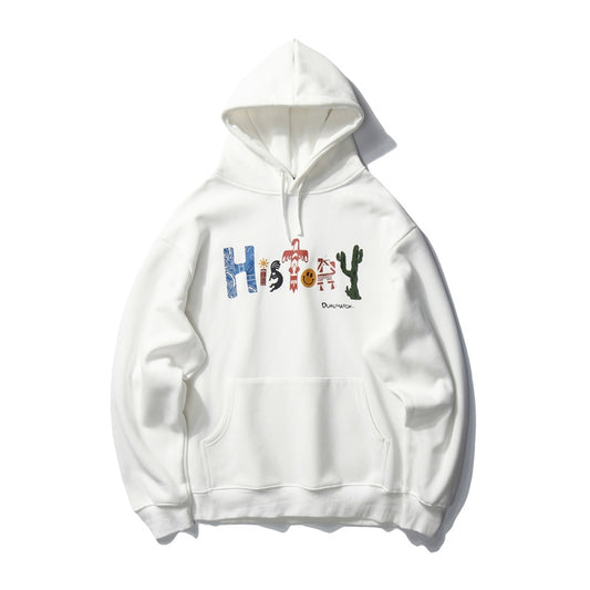 Artistic Letters Color Print Hooded Pullover Loose Sweatshirt