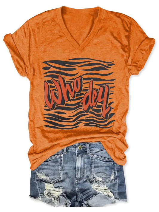 Women Who Dey Tiger V-Neck Shirt