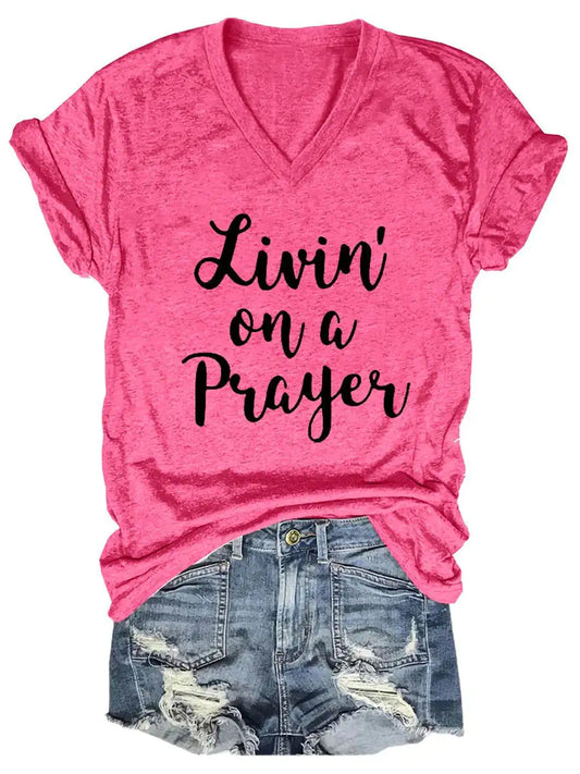 Women's Livin' On A Prayer V-Neck Shirt