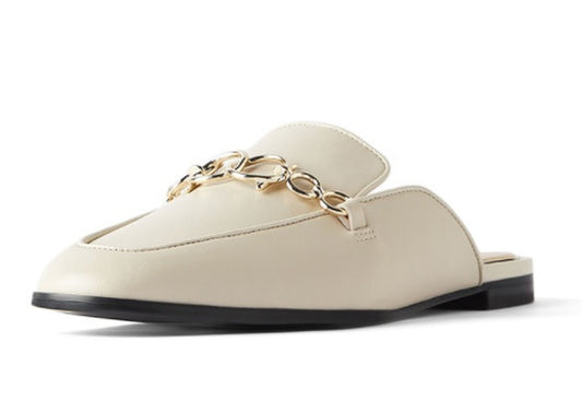 Nude Sheep Leather Half Slippers Women Toe Flat Shoes Women