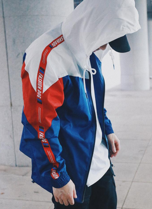 Tide brand windbreaker male and female European retro spell color Jackets spring loose sports leisure students handsome hooded jacket