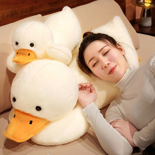 Lying Big White Duck Feather Plush Toy Soft And Adorable Pillow