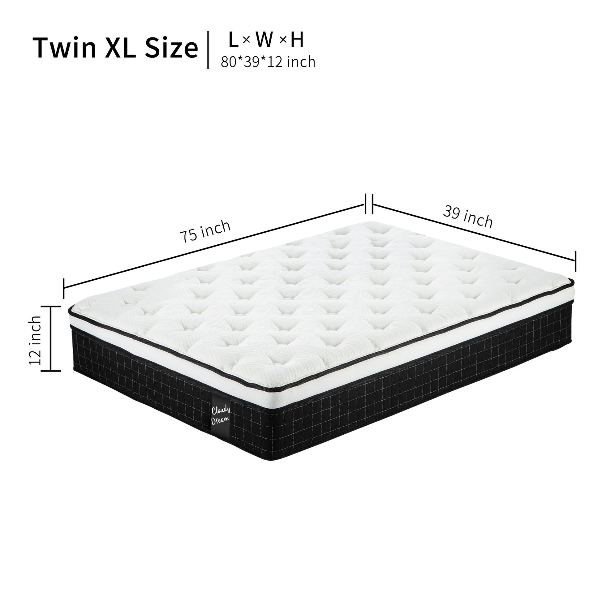12 Inch Hybrid Mattress Individual Pocket Spring Memory Foam Cool Knitted Cover CertiPUR-US Black