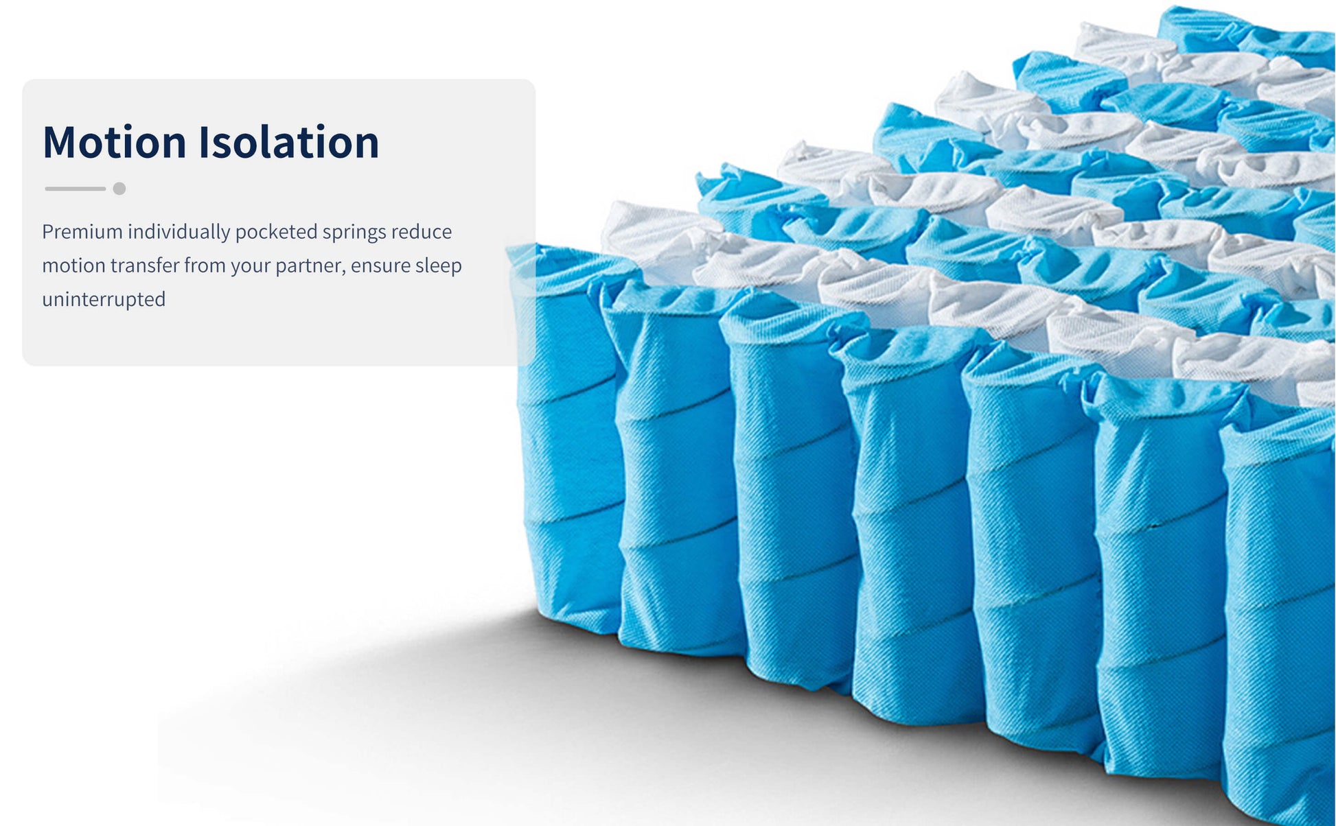 - Motion Isolation, adpot individual pocket springs which reduces noise and motion transfer, catering to light sleepers.