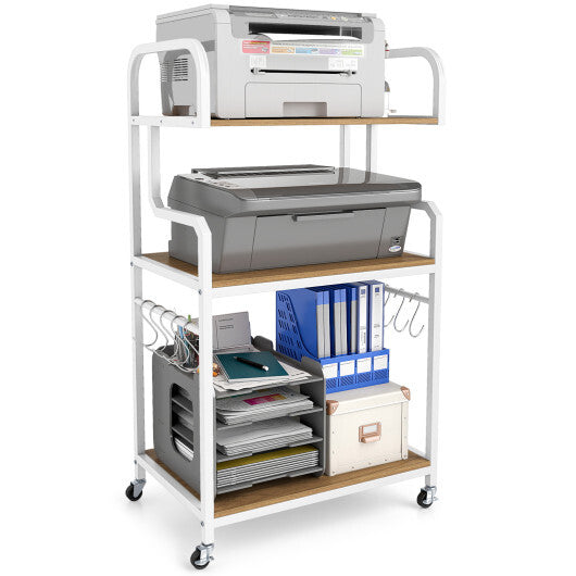 3-Tier Rolling Printer Stand Home Office Large Printer Cart with Storage Shelves-Rustic Brown