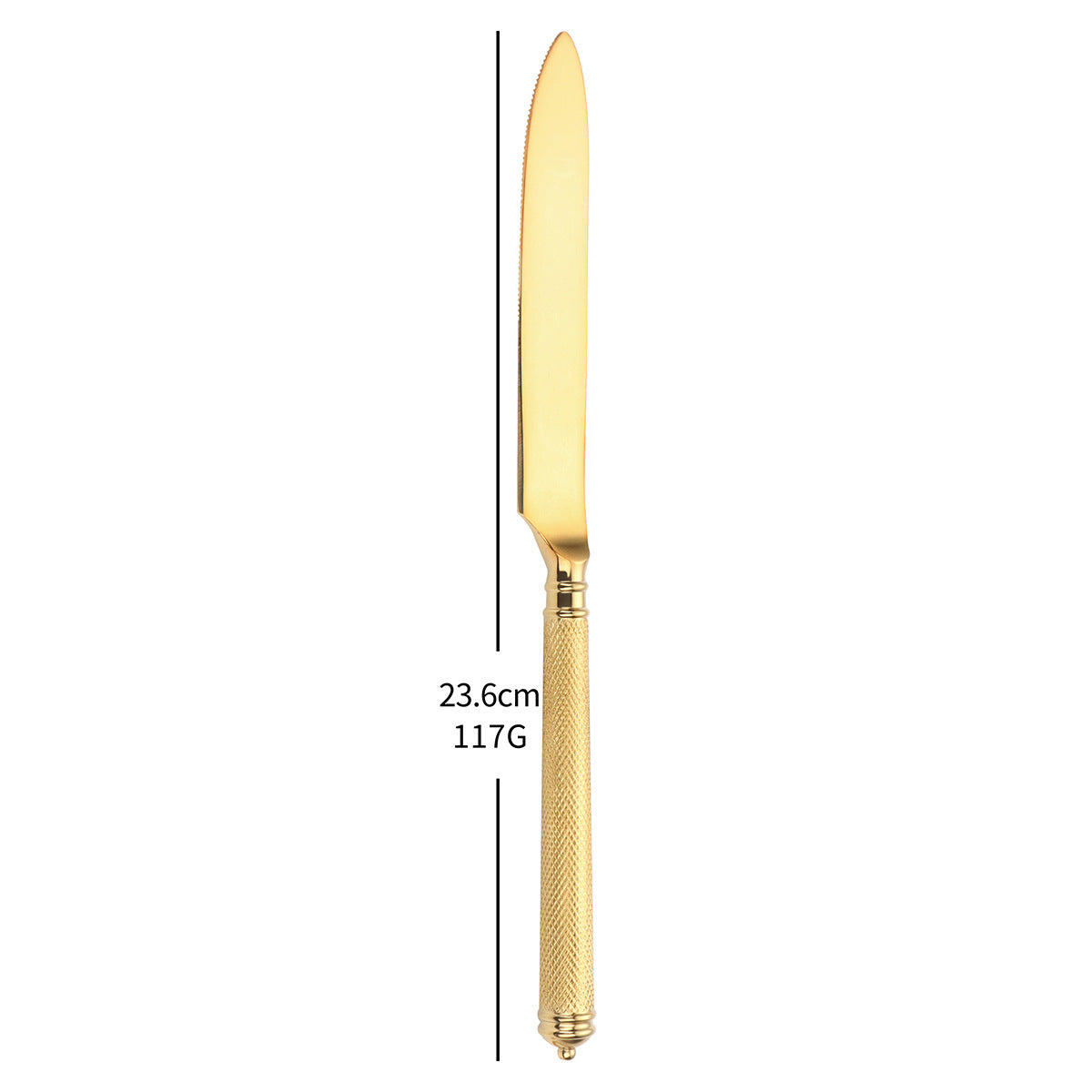 Specifications: primary color Main knife, primary color fork, primary color main meal spoon, primary color dessert fork, primary color dessert spoon, primary color five-piece set, gold main meal knife, Gold Fork, gold main meal spoon, gold dessert fork, gold dessert spoon, gold five-piece set