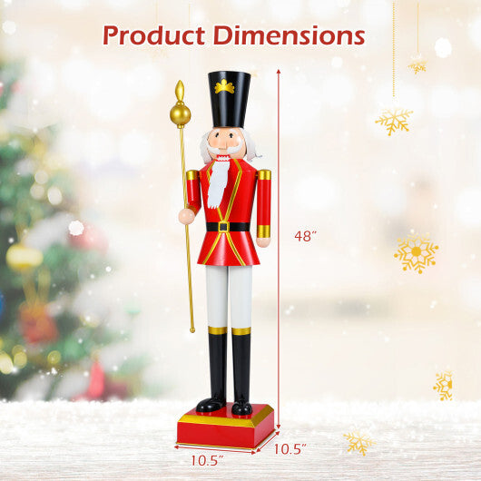 4 FT Christmas Nutcracker with High Hat & Beautiful Scepter-Black & Red