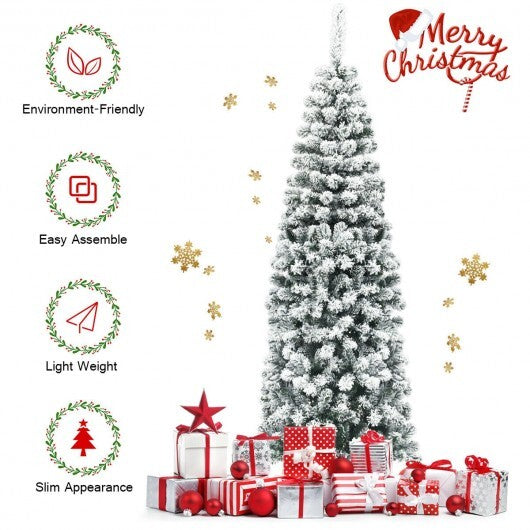 6 Feet Unlit Hinged Snow Flocked Artificial Pencil Christmas Tree with 500 Branch Tip