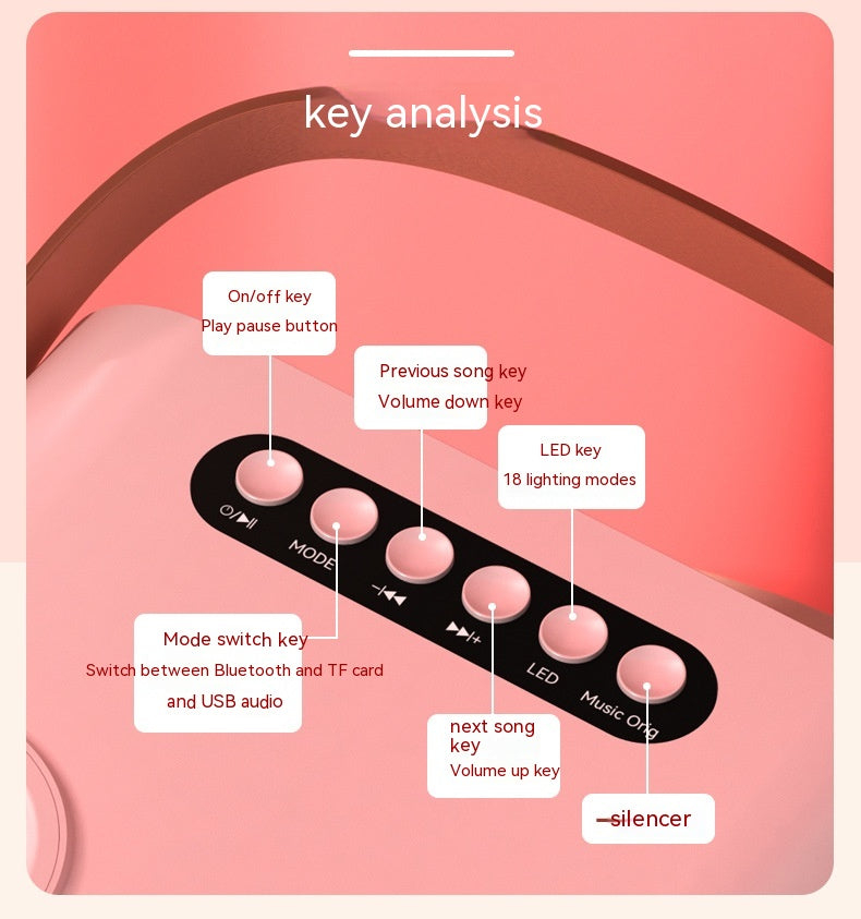Product function: Bluetooth TF card AUX USB comes with karaoke mode RGB rhythm light