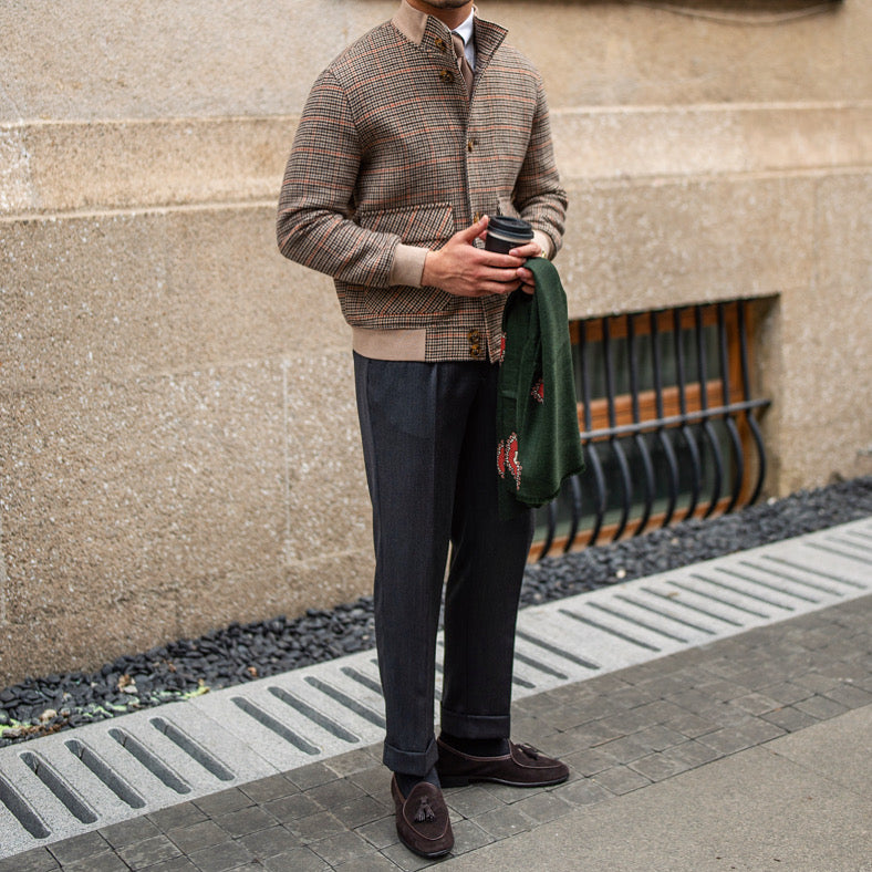 Bomber Jacket Tweed Fleece Cropped Slim-fit Jacket With Stand-up Collar