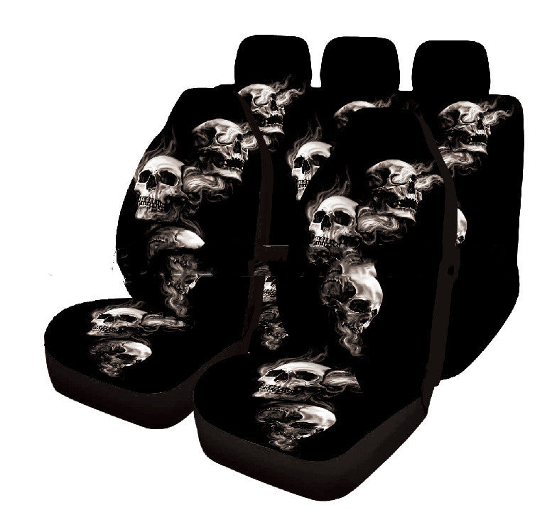 Car Seat Cover Full Package, Smoking Skull High Back Print 5-seater 7-piece Set