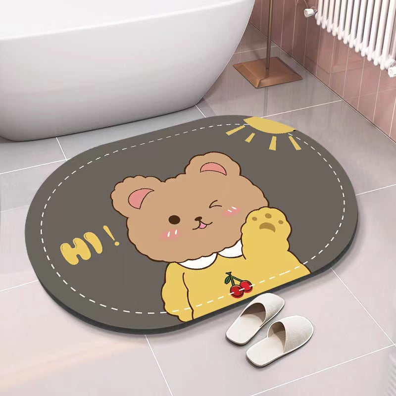 Cartoon Cute Bear Diatom Mud Soft Water Absorbent Floor Mat Anti Slip