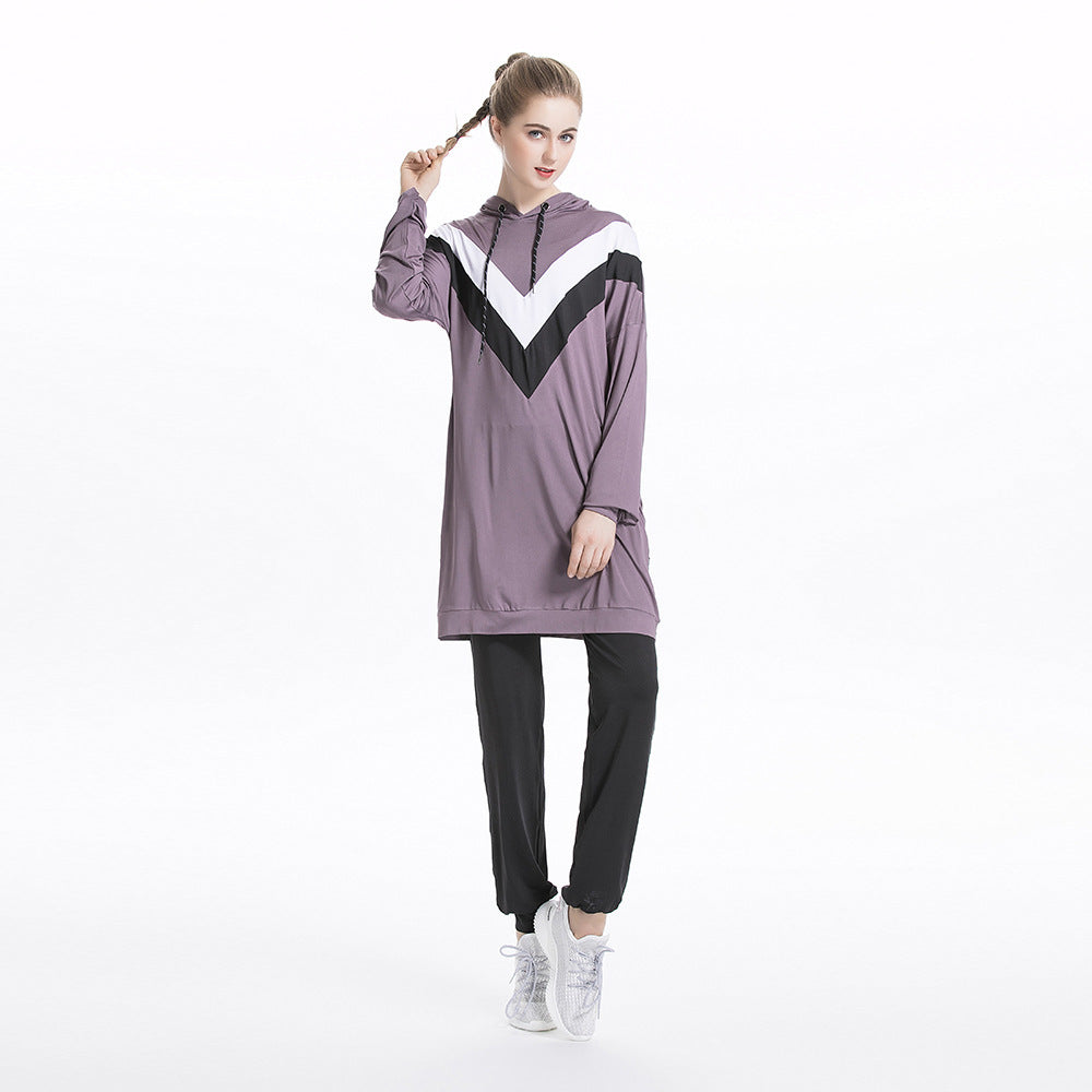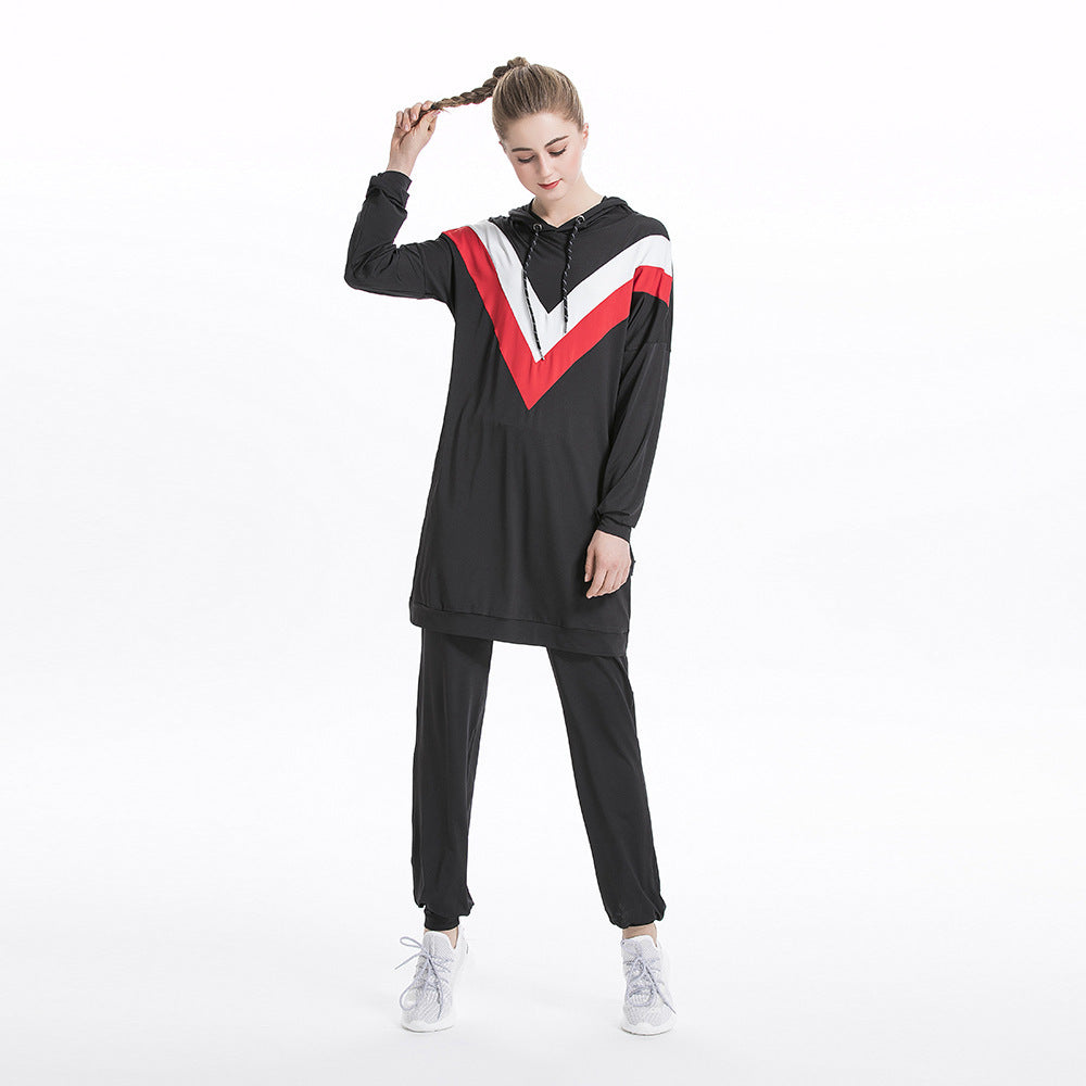 Casual Color Matching Hooded Sports Sweatshirt Suit